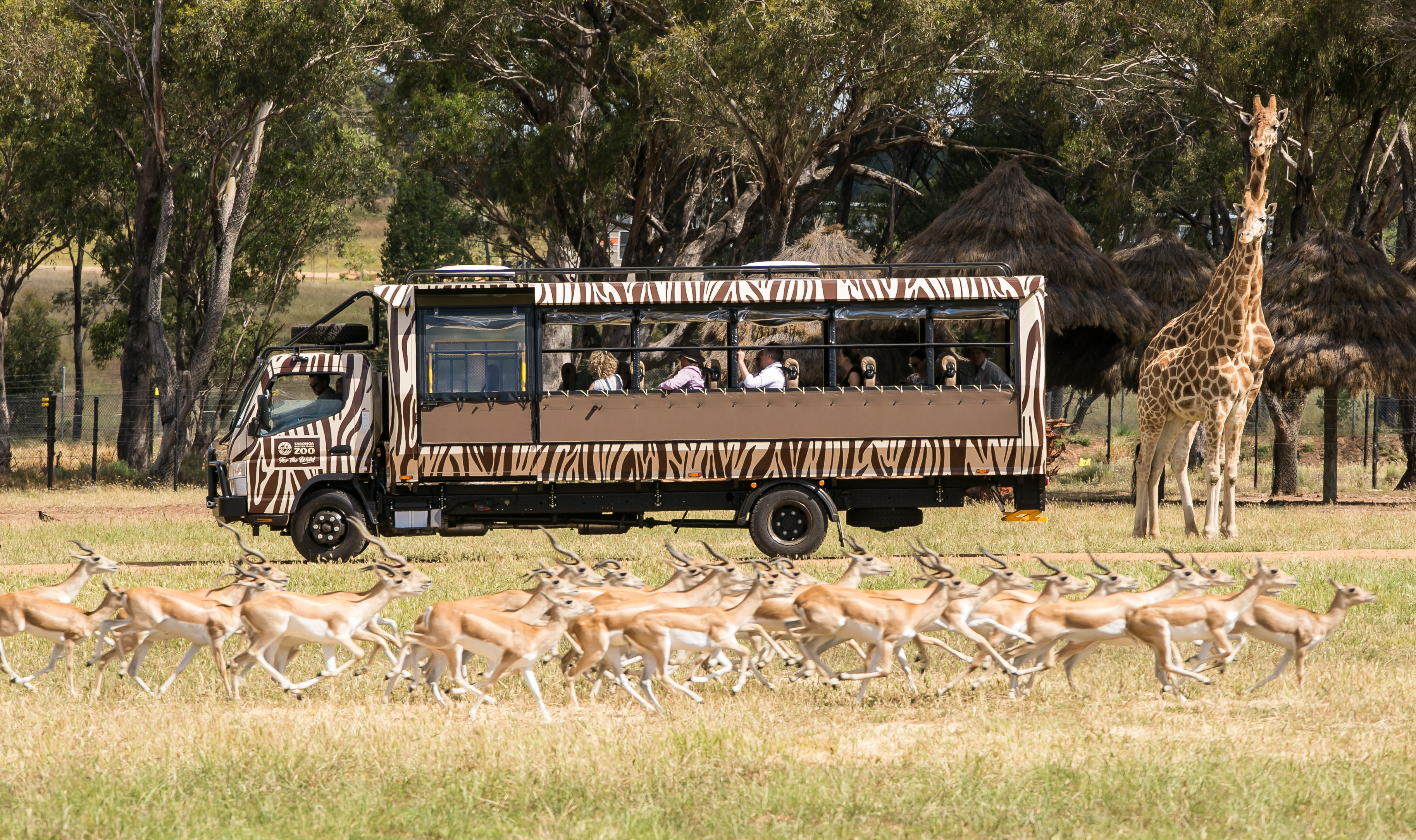 The Savannah Safari experience features two purpose-built safari trucks that carry visitors through the zoo’s African Savannah exhibit, featuring giraffes, two species of antelopes and ostriches.