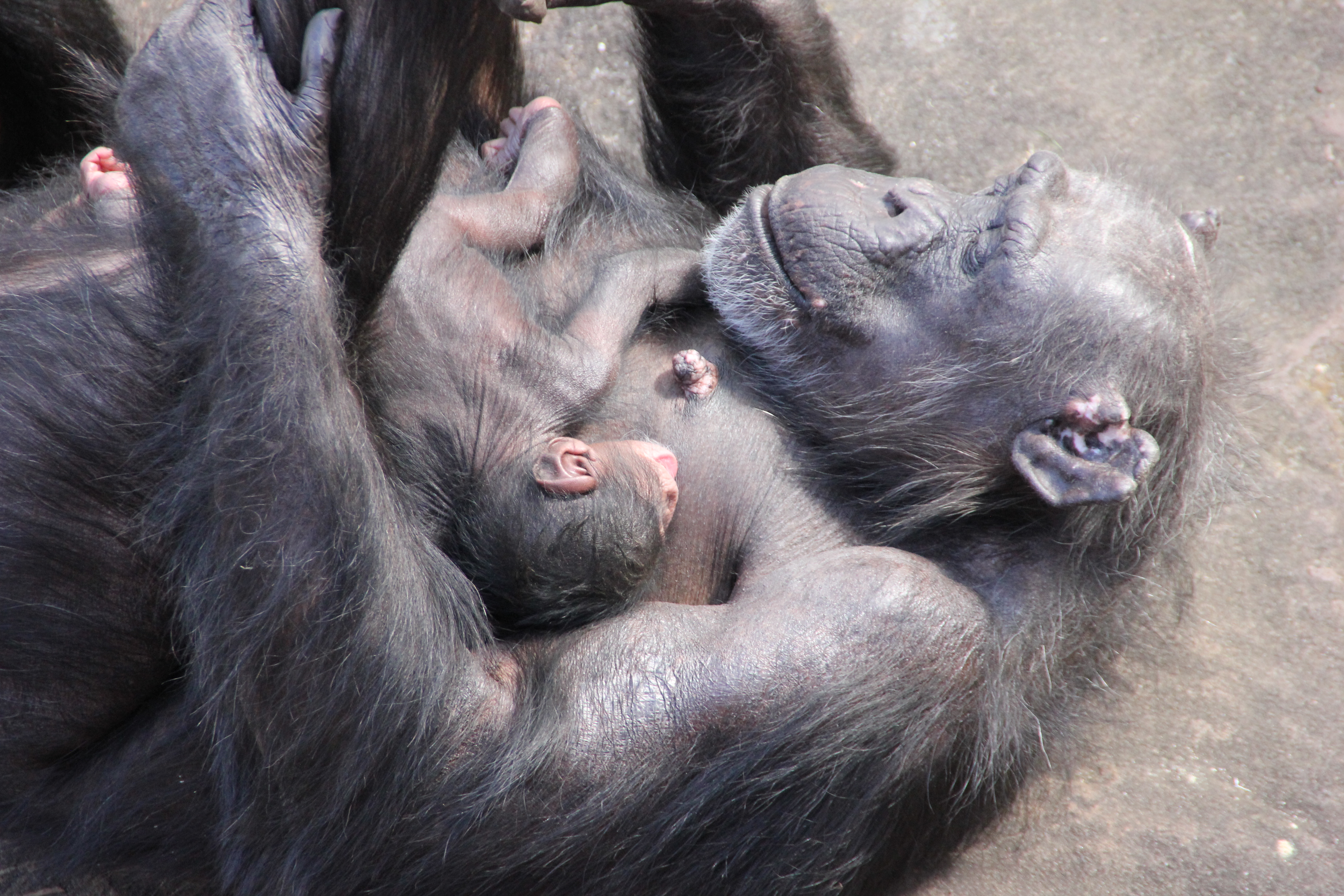 Earlier this week, keepers were excited to find that senior female, Lisa, had given birth overnight. As the mother of our alpha male, Lubutu, and adolescent female, Lani, Lisa is well respected within our chimpanzee community and knows exactly what it takes to be a successful mother.