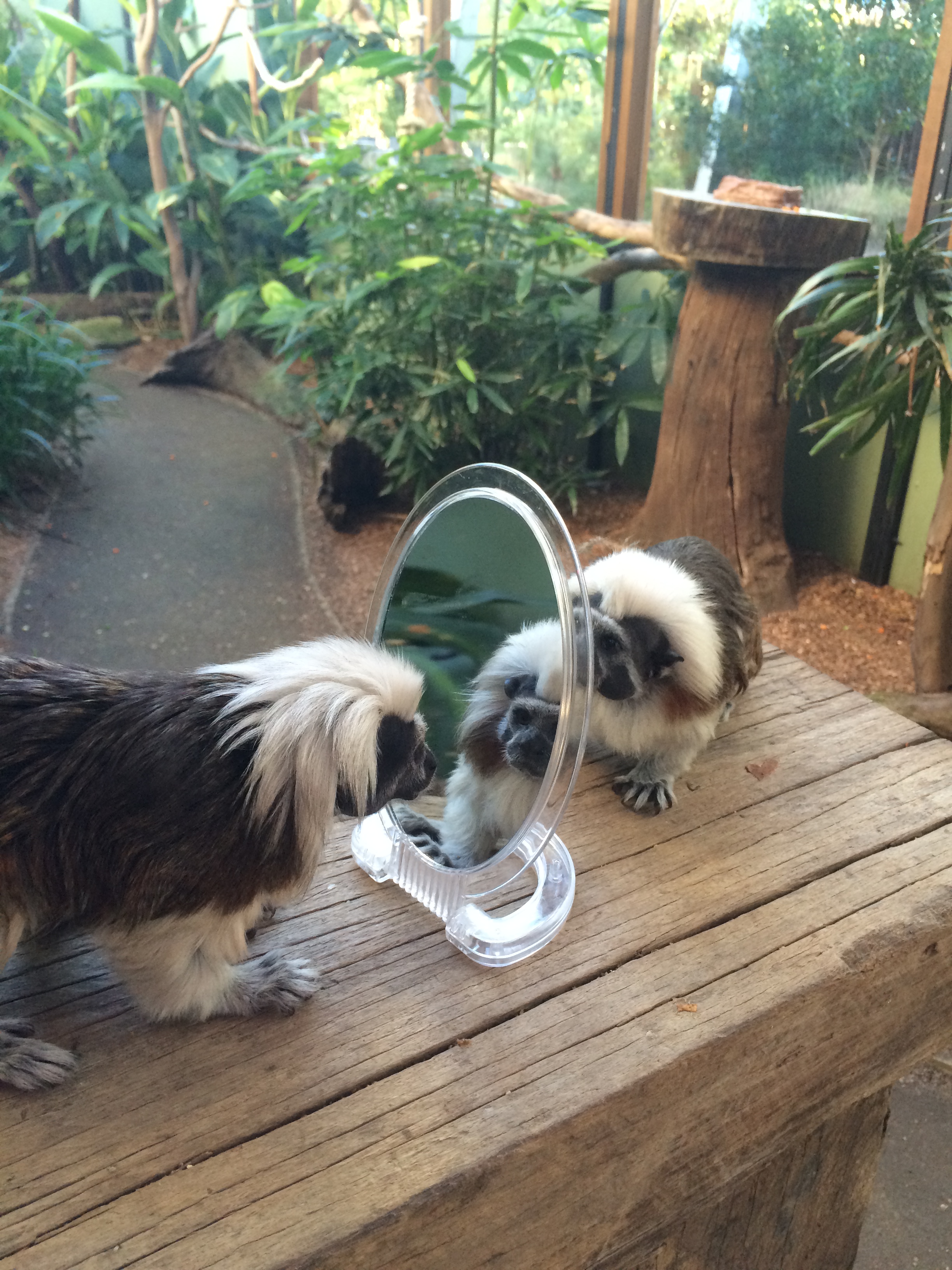 This week we gave the brothers, Juan, Pedey, JD and Trichidae, a mirror to see how beautiful they are! They loved checking themselves out in the double-sided mirror and spent a long time trying to figure out who they were looking at! Juan looked a bit disappointed about having a bad hair day!