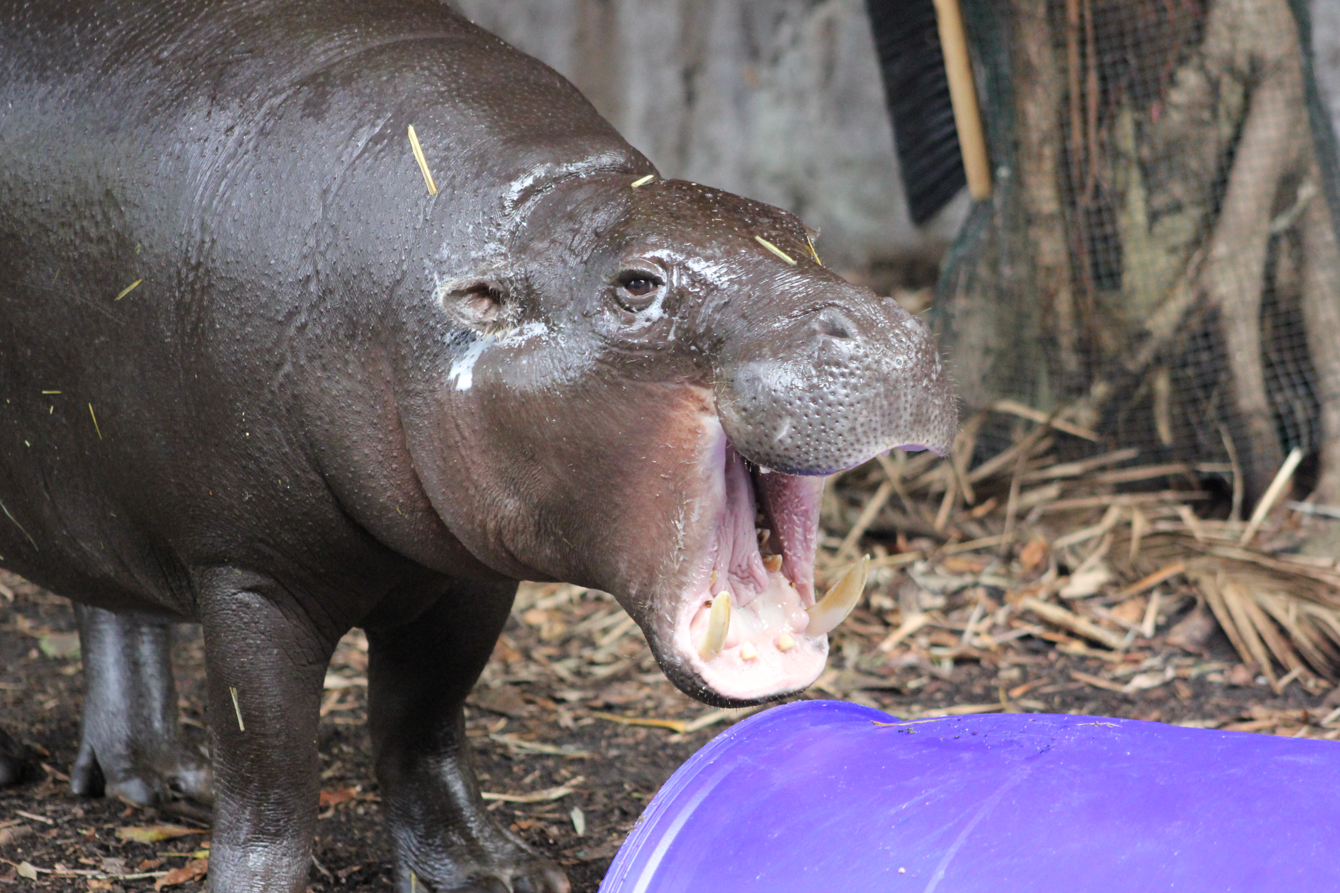 Taronga’s hippo keepers tried out some new enrichment feeders for our two adorable Pygmy Hippos, Fergus and Kambiri, this week.