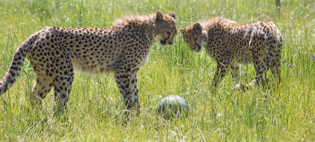 Usually in the wild female cheetah become solitary once they reach sexual maturity, which for females is around 2 years of age. Eventually the two might want their own space, but for now they are thoroughly enjoying each other’s company.
